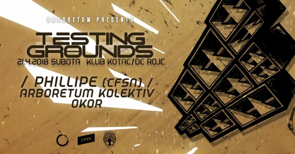 Arboretum Kolektiv u suradnji s klubom Kotač s ponosom predstavlja TESTING GROUNDS – večeri posvećene Drum’n’Bass glazbi i kulturi. Jednom mjesečno predstavljat će se međunarodna, regionalna i lokalna imena koja će svoje setove i autorske pjesme izvrtiti na našem pokusnom polju.
