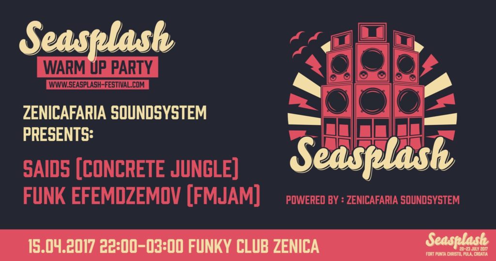 Warm-up parties for jubilee 15th Seasplash Festival are happening all around the globe, including in Zenica. Zenicafaria soundsystem, frequent visitor and longtime associate of Seasplash, is organizing official warm-up party on 15th of April 2017 in Funky Club Zenica. Our dancing feet will move to the rhythms of Said5 and Funk Efendzemov, and on the event awaits a prize contest in which you can win tickets for 15th Seasplash festival.